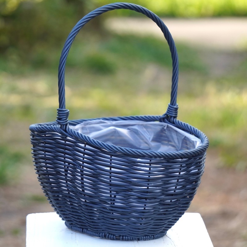 水で洗えるプラスチック製の籠タイプのハンドバスケット。