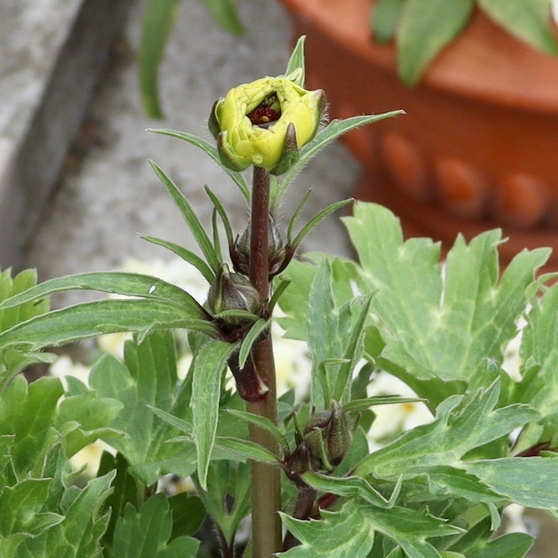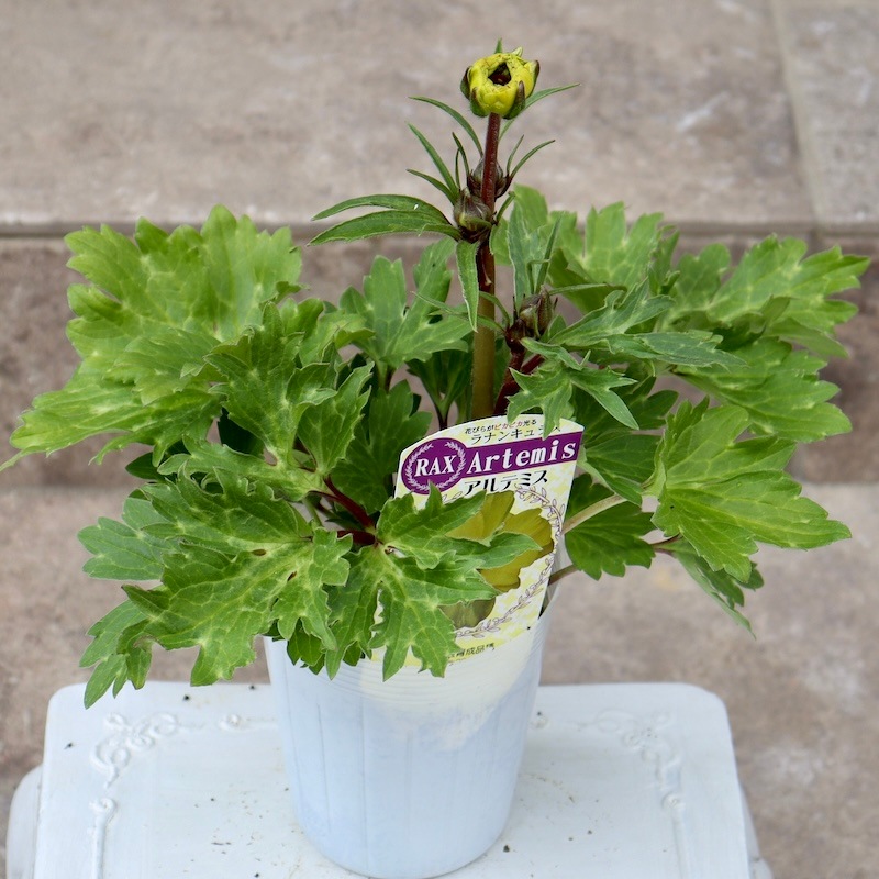 あまり出回らない魅力的な品種が入る!! というアソート入荷が嬉しくて注文した苗ですが、届いたのはほぼ葉っぱだけのラベル苗でした。 株はしっかりしていますが、自然開花に近い苗ですね。