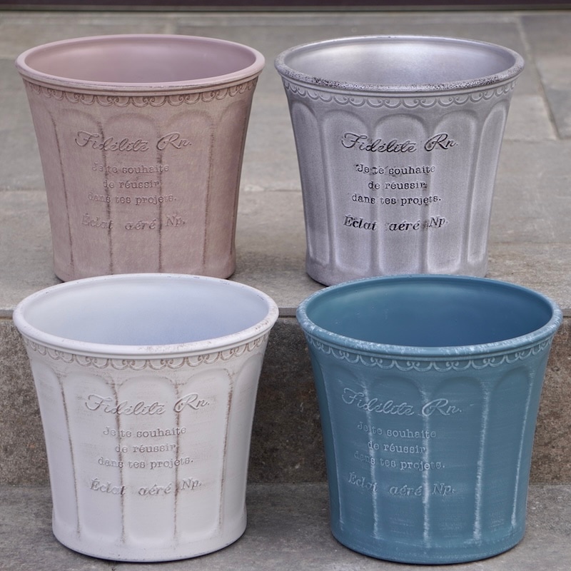 そんな風散歩の植木鉢取り扱いバリエーション・歴史(←大袈裟!笑)を振り返って 再検討してみました。 樹脂製品だってブリキ製品と同じ!? いえ、むしろ錆びないで繰り返し使いやすい!? 酷暑にも問題なく使える!! もちろん、塗装が色褪せたり剥げてくることはあるでしょうけれど、それはファイバー・テラコッタ・ブリキの塗装品も同じ。
