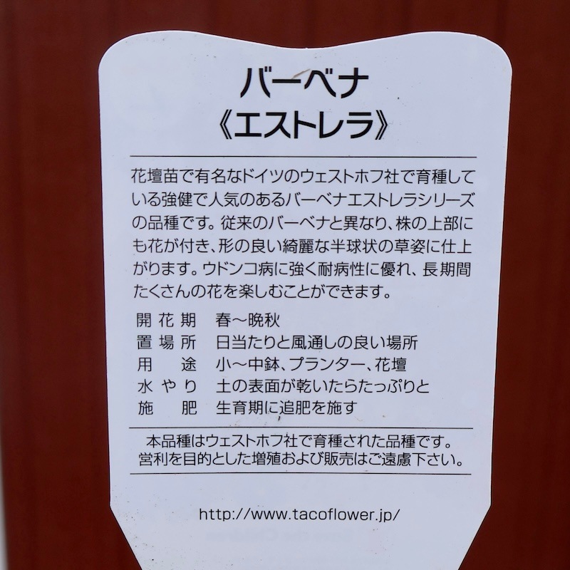 ドイツのウエストホフ社で育種されたバーベナだそうです。