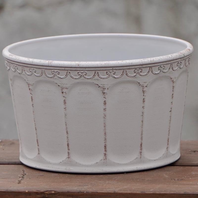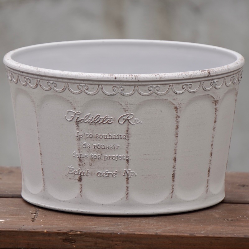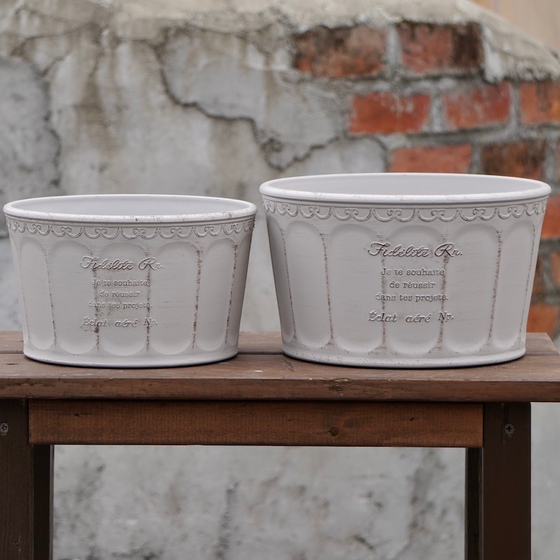 2~3年前から取り扱い始めたブリキポットも、最初は「花が安っぽく見えるのでは?」と抵抗がありましたが(笑)どんどん素敵なデザインのブリキポットが出始めて、高品質の商品も出てきたので、取り扱うようになりました。 ブリキでも品質の良いものは価格もそれなりにしますが、グラスファイバーと比較するとかなりお安いです。 そして、ブリキは軽くて割れない。でも、使うとサビます。それもアンティーク風で素敵な演出になることもありますが、何シーズンも使うものでもないような・・・