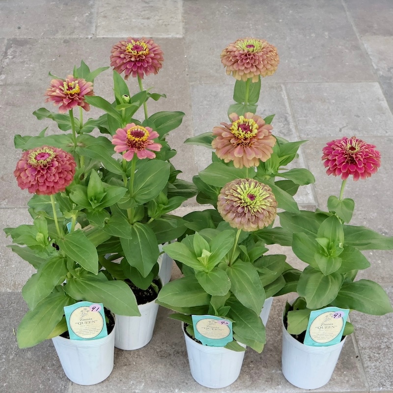 今年はジニア・クイーンの苗を色分けして販売中(^^)