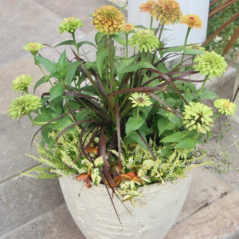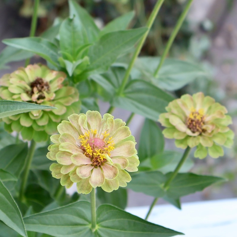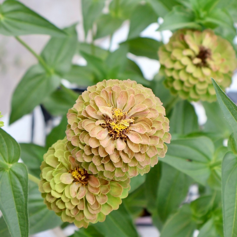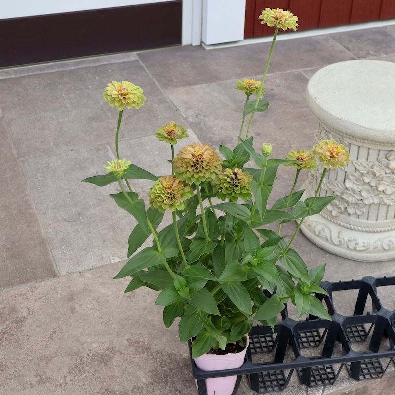 現品1点限り♪八重咲きジニア・クイーン「ライムウイズブロッチ?」(色グループ1-11)