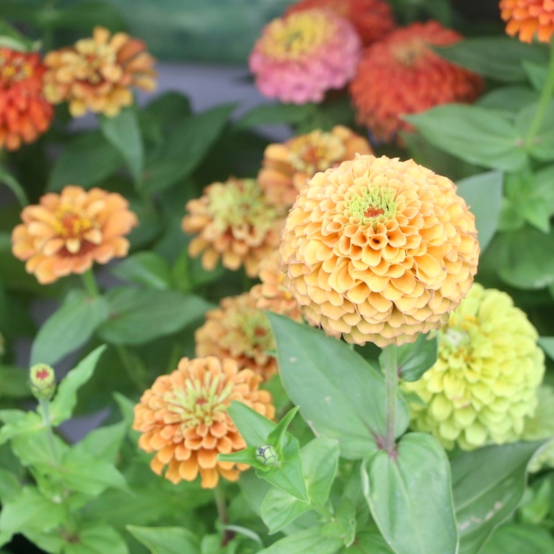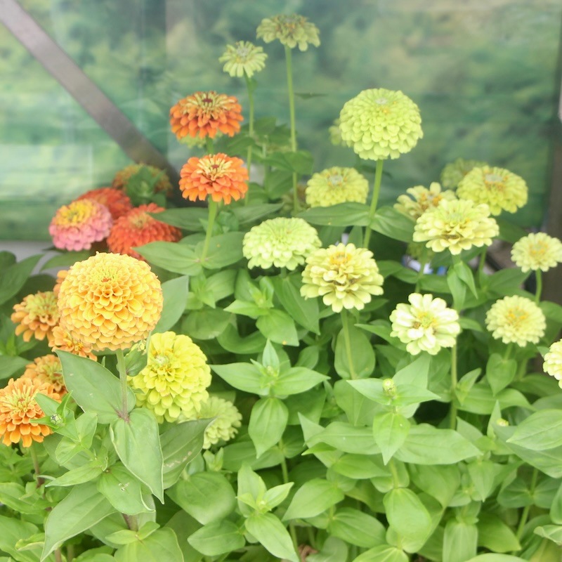 今年はジニア・クイーンの苗を色分けして販売中(^^)