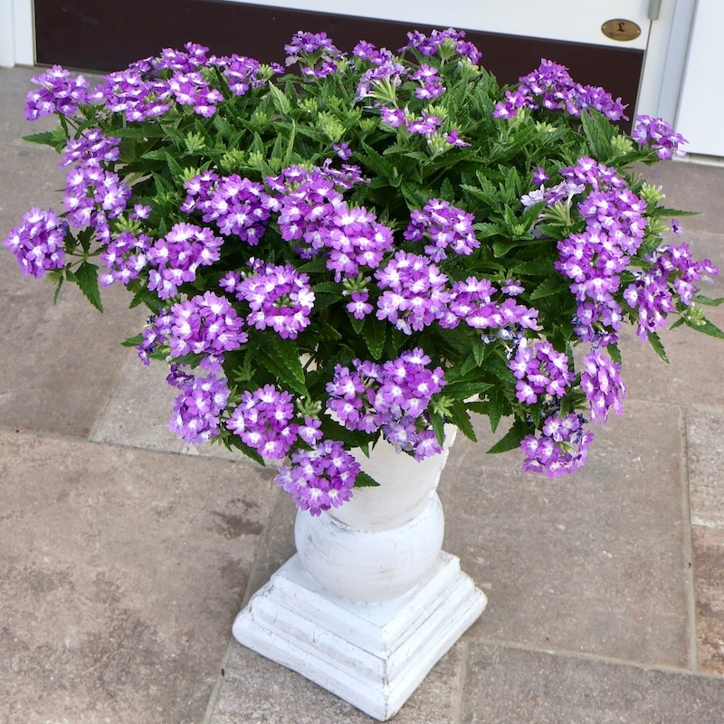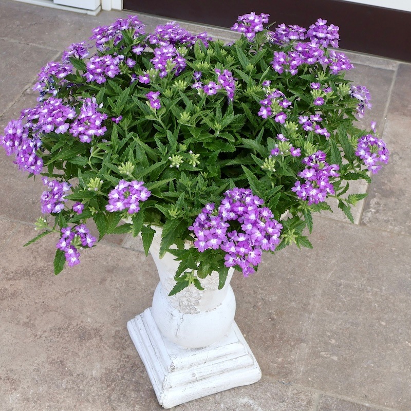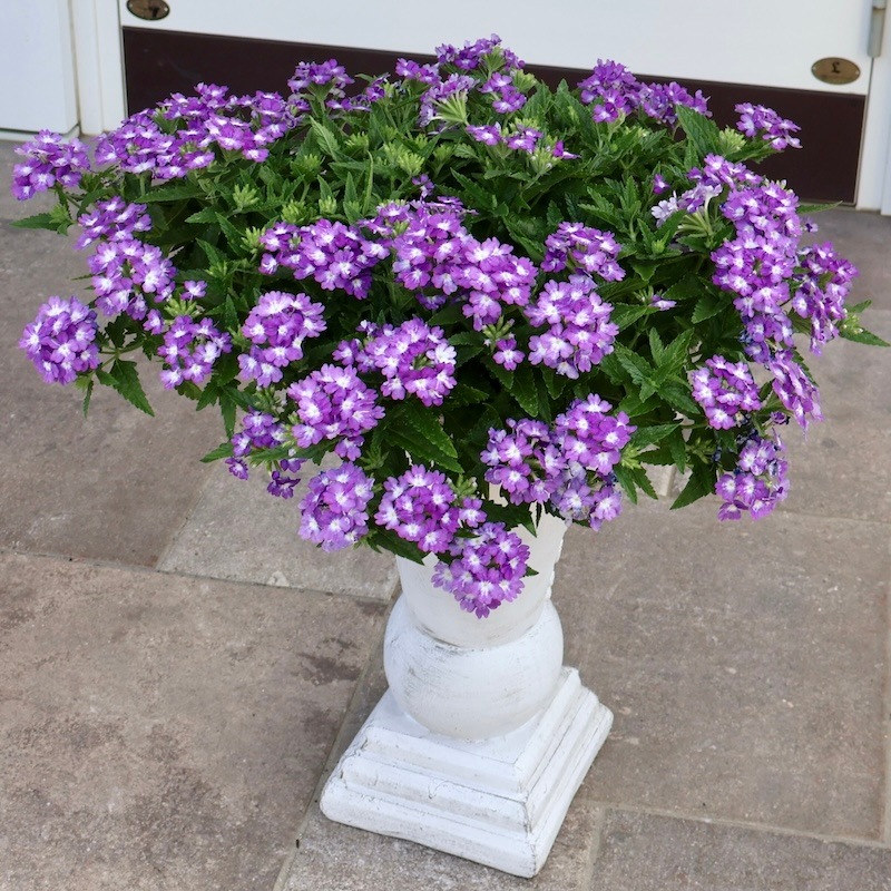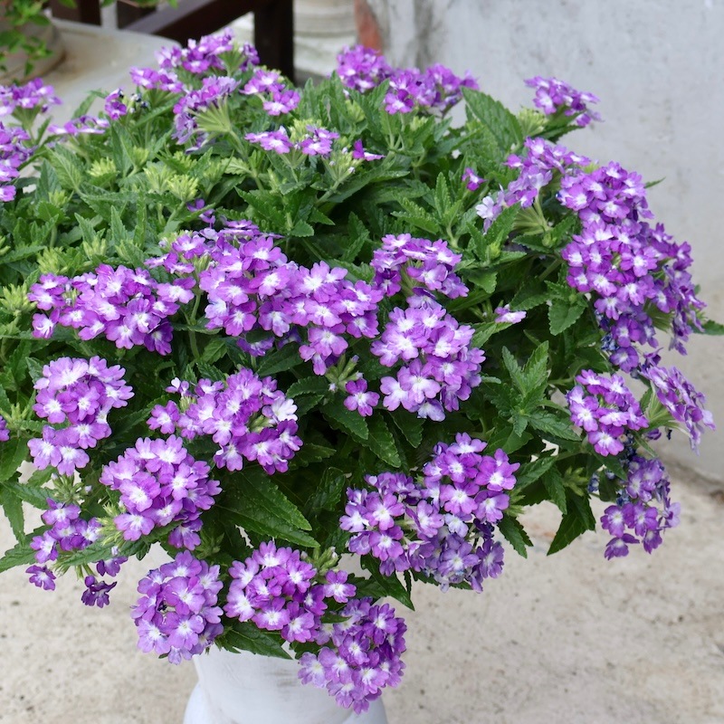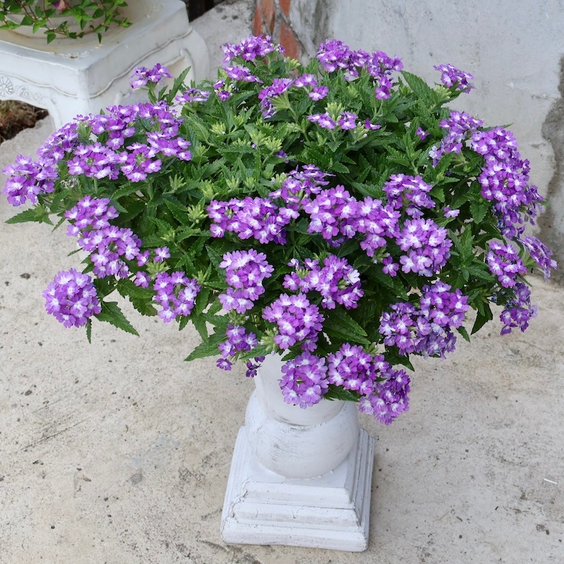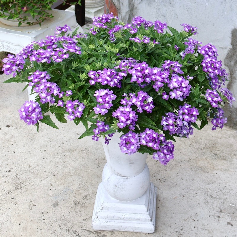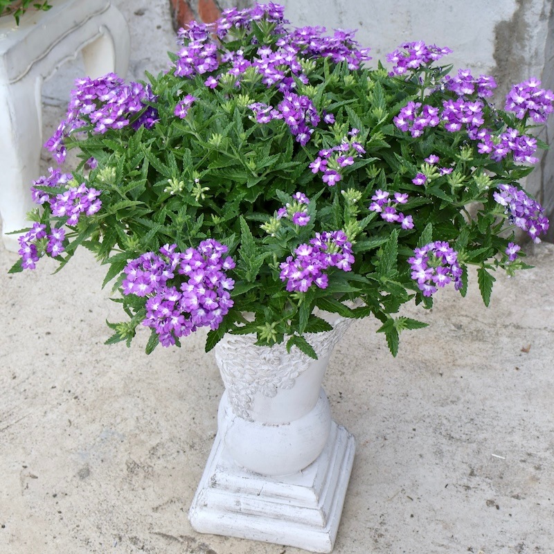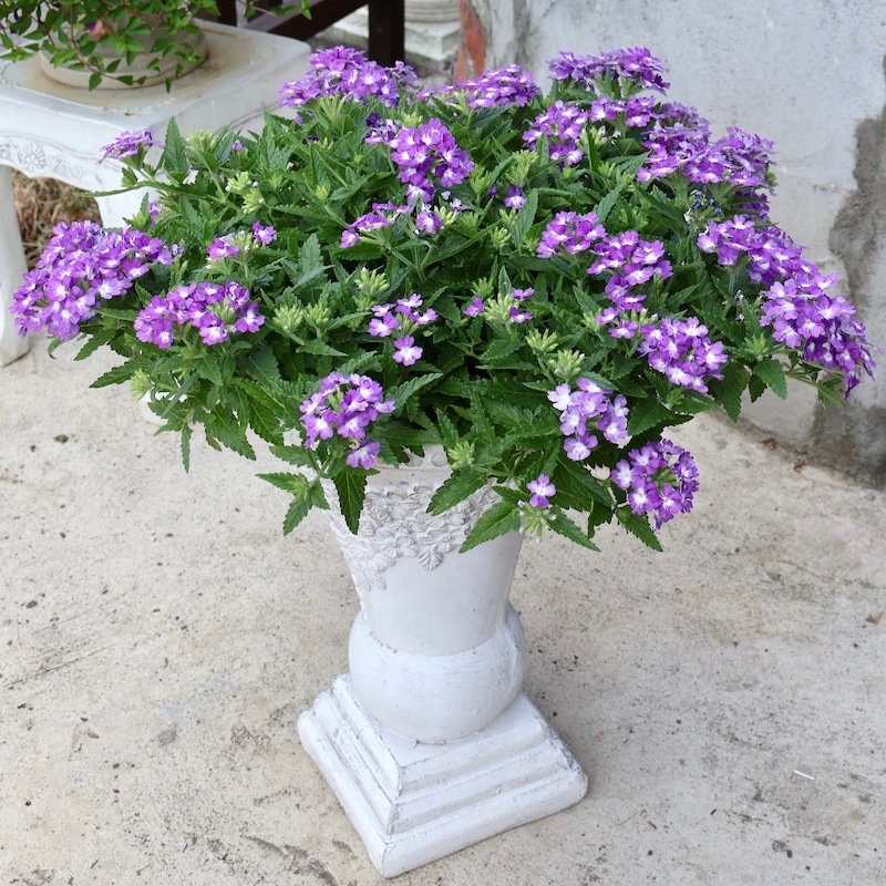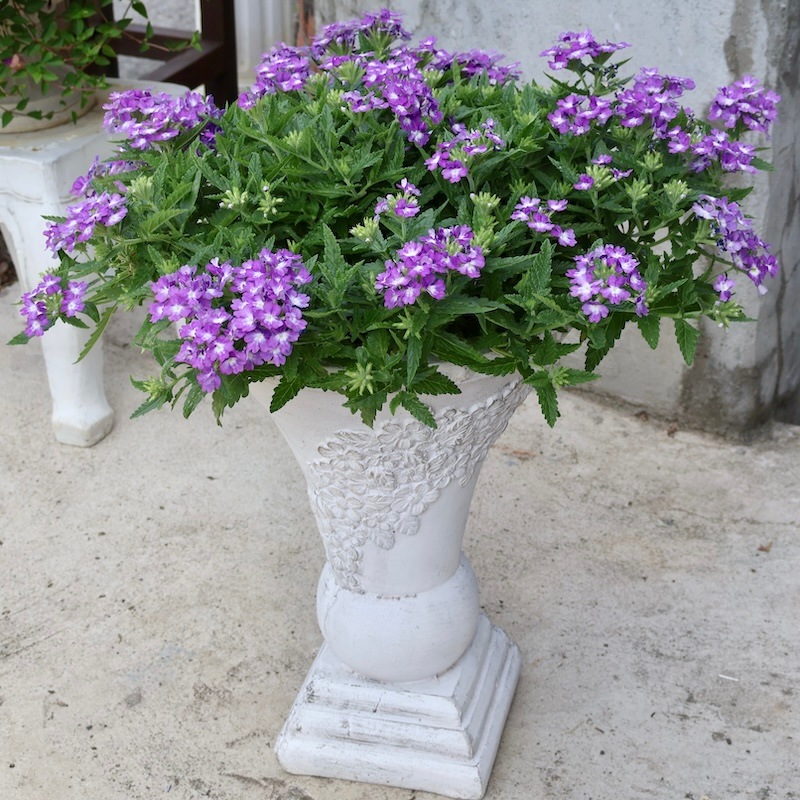 お値打ち1点物・見本鉢です!! 横張り性の宿根バーベナ・パティシエ「ブルー&ホワイト」 この花に似合う鉢はコレ!!