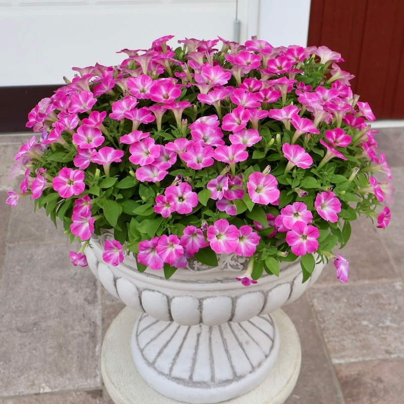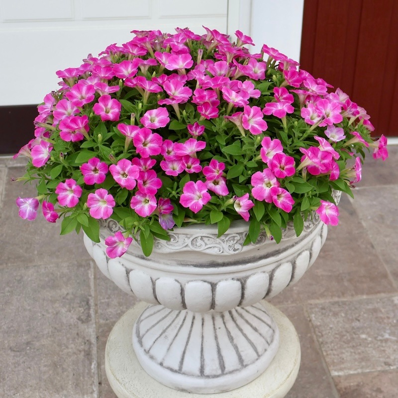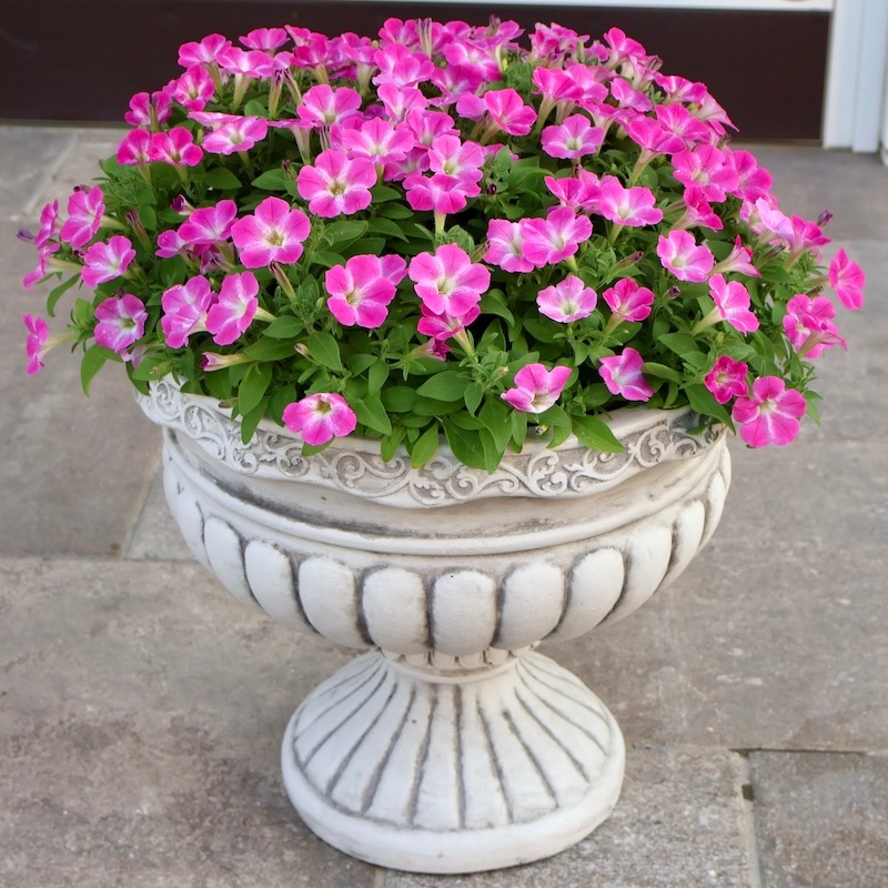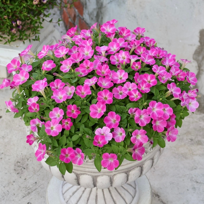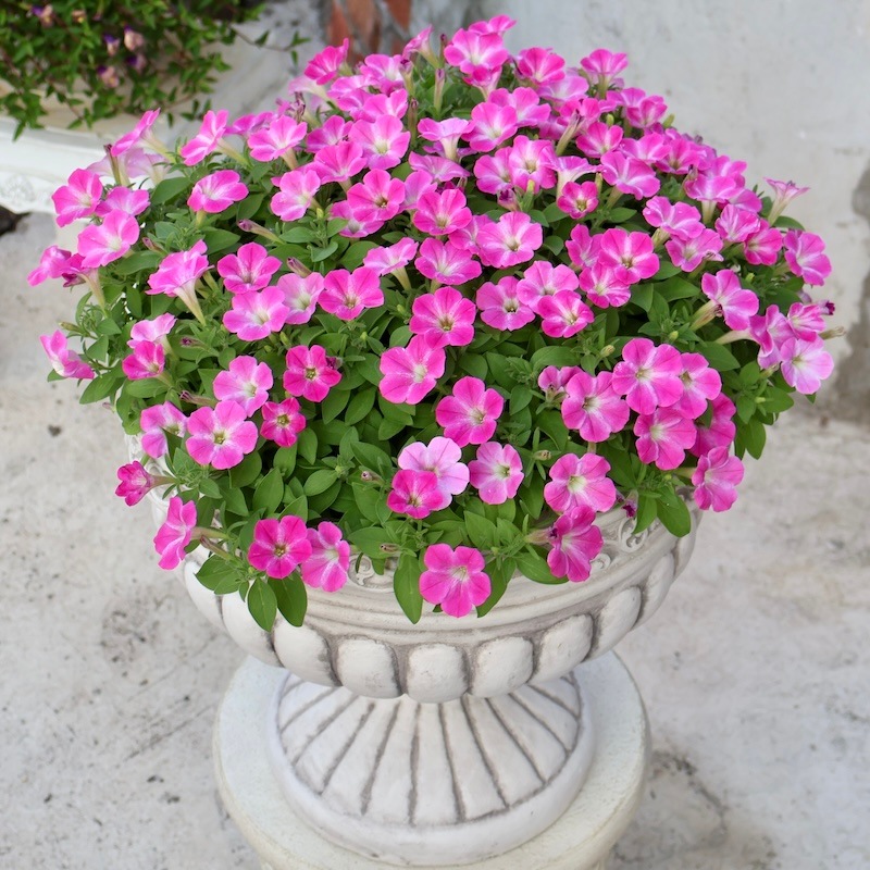 やっぱり鉢が素敵だと違いますよね。 鉢が花を引き立て、花が鉢を引き立てる相性の良さ☆ サントリーさんのサフィニア・アート 「小梅ちゃん」 この花に似合う鉢はコレ!! と見本鉢でご紹介したく植えて育てていましたが、ゆっくりじっくり育てている間に、苗は完売となってしまいました^^; いつもの事ですが。苦笑