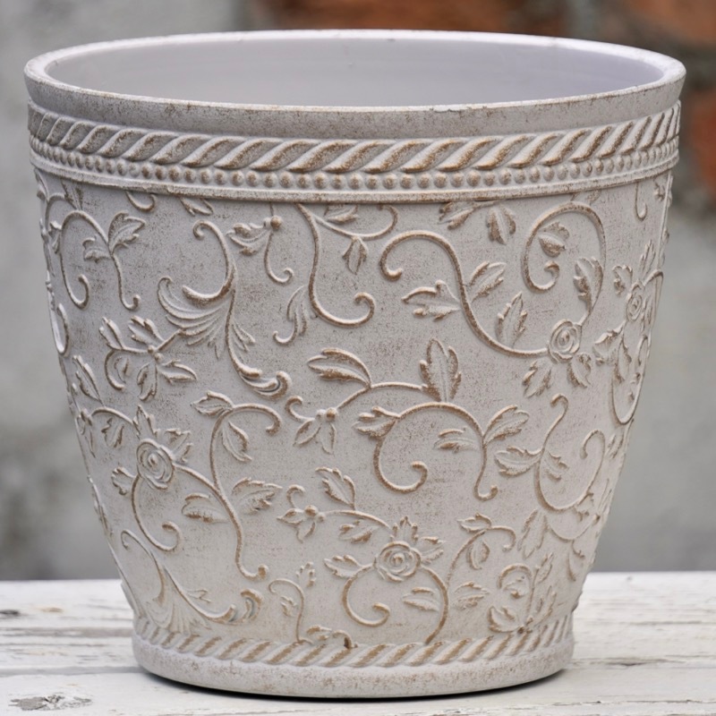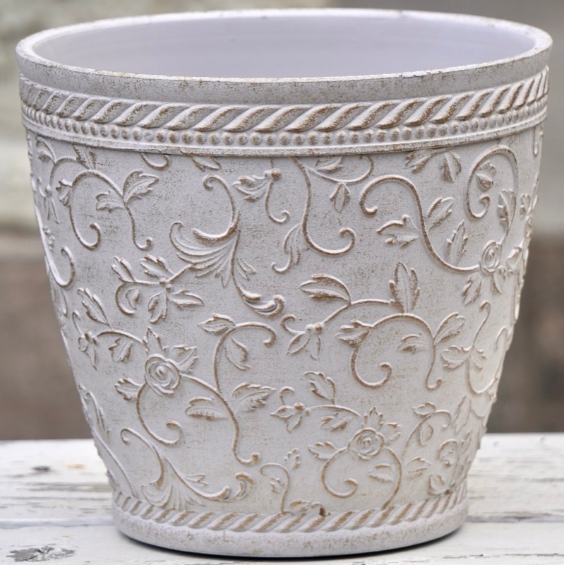 普通の安価なプラスティック鉢はホームセンターにたくさん並んでいても、こんな素敵なデザインの良質な樹脂製の鉢って置いてる?