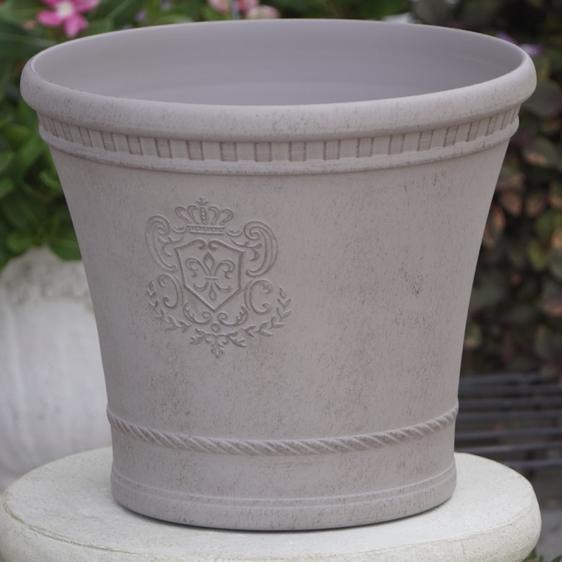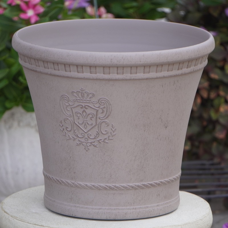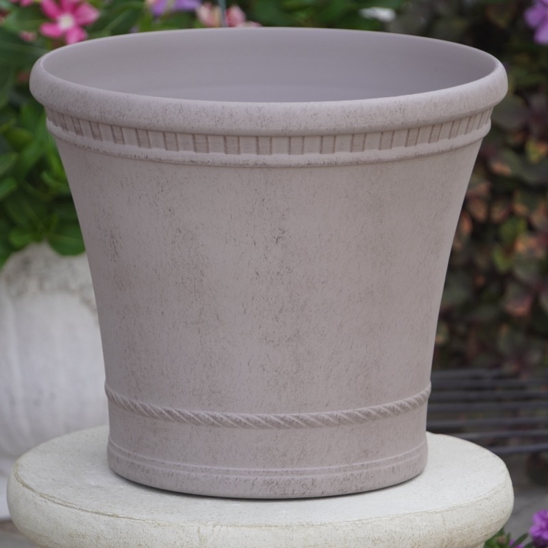 普通の安価なプラスティック鉢はホームセンターにたくさん並んでいても、こんな素敵なデザインの良質な樹脂製の鉢って置いてる?