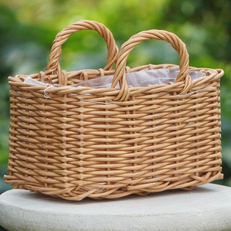 内側にはビニールカバーが付いているので、直接植え込む際は外してお使いください。 ジュート(麻のシート)やココヤシなどを敷いて植えていただくと、籠の隙間から土漏れせずに植えやすい上、雰囲気もgoodですよ。