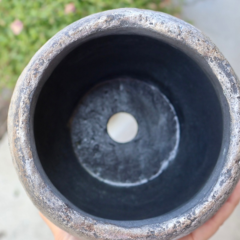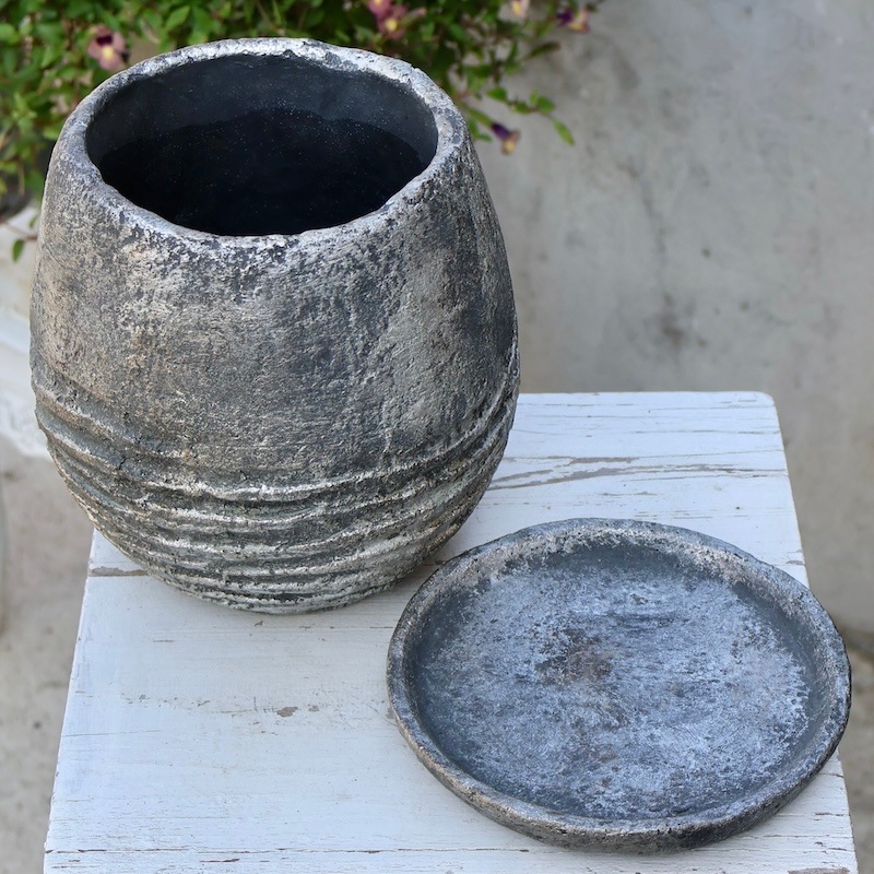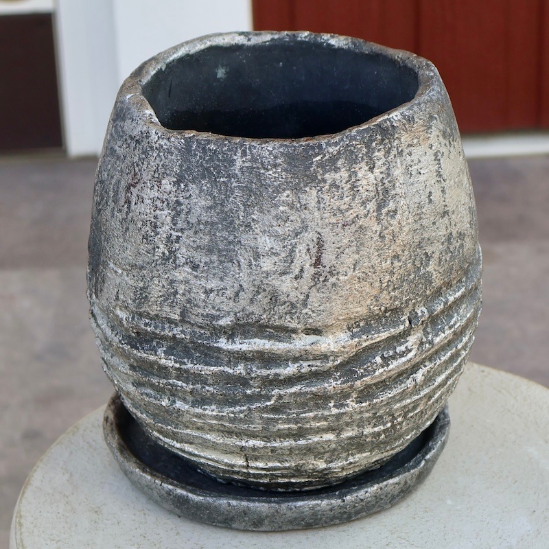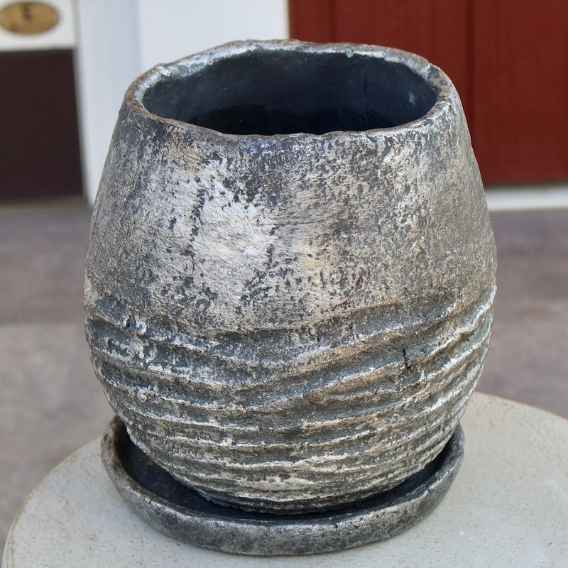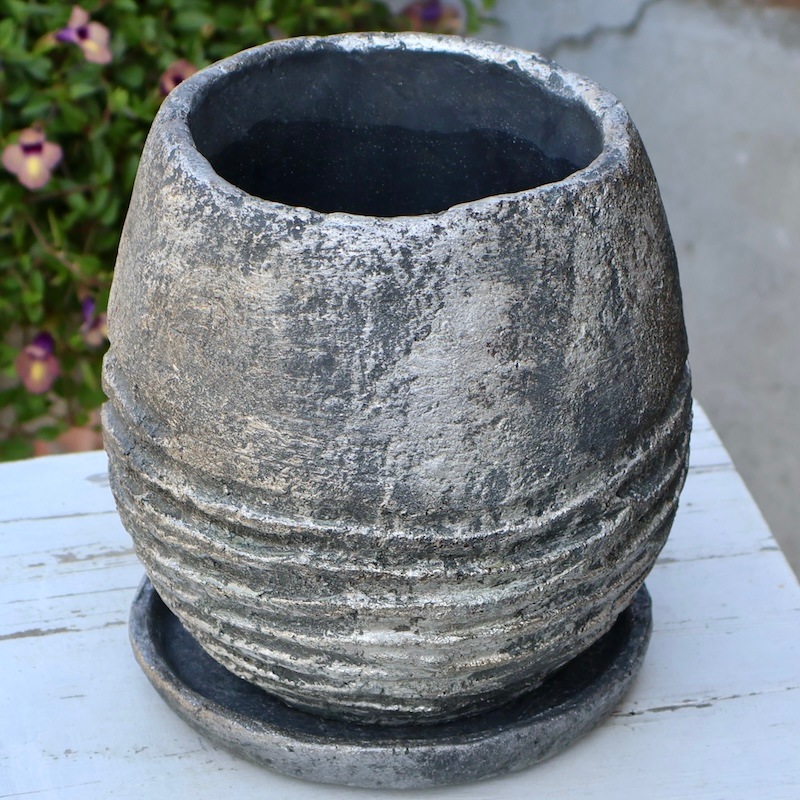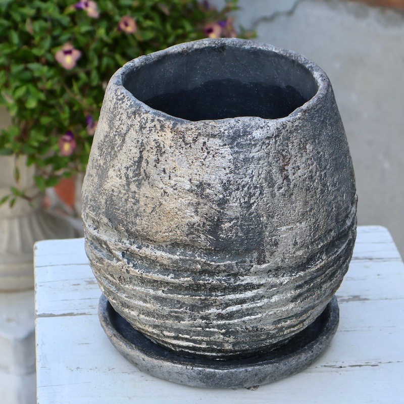 受皿付き☆イマジンポット・グレー(直径17cm)