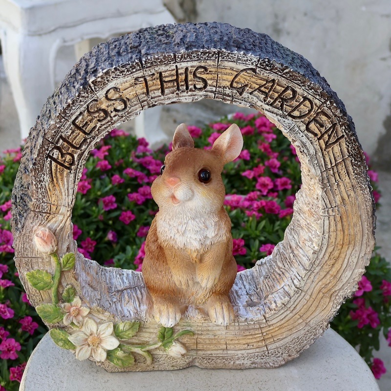 お花いっぱいのお庭の真ん中に置くとウサギちゃんの背景がお花畑のように♪