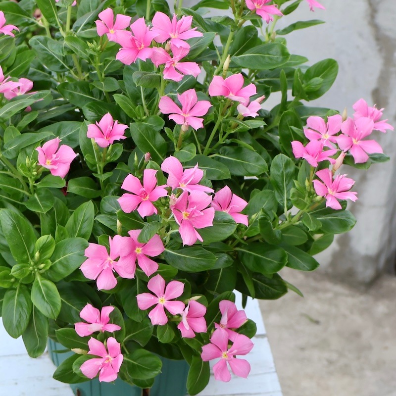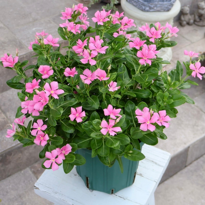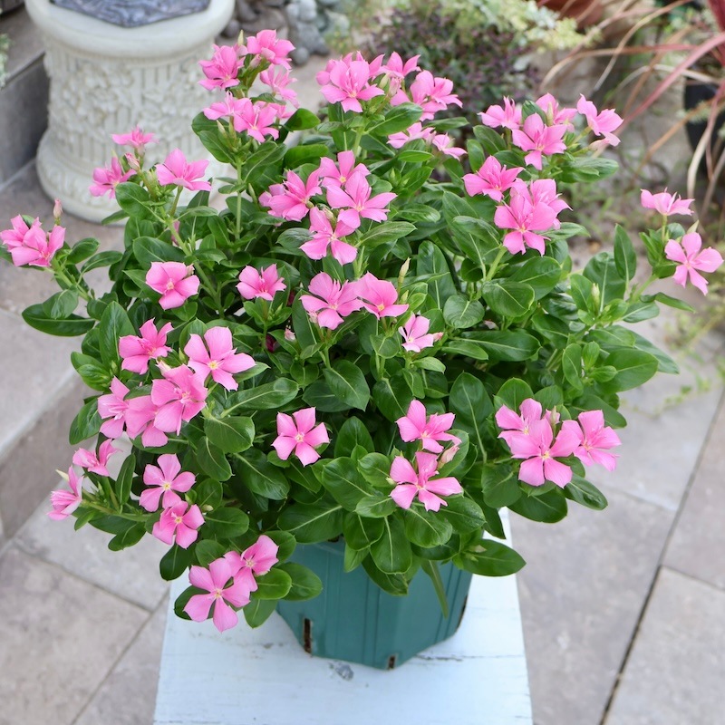 画像の現品☆直径約39㎝☆八重咲きニチニチソウ☆サニープリンセス「ピンク」6号スリット鉢仕立て