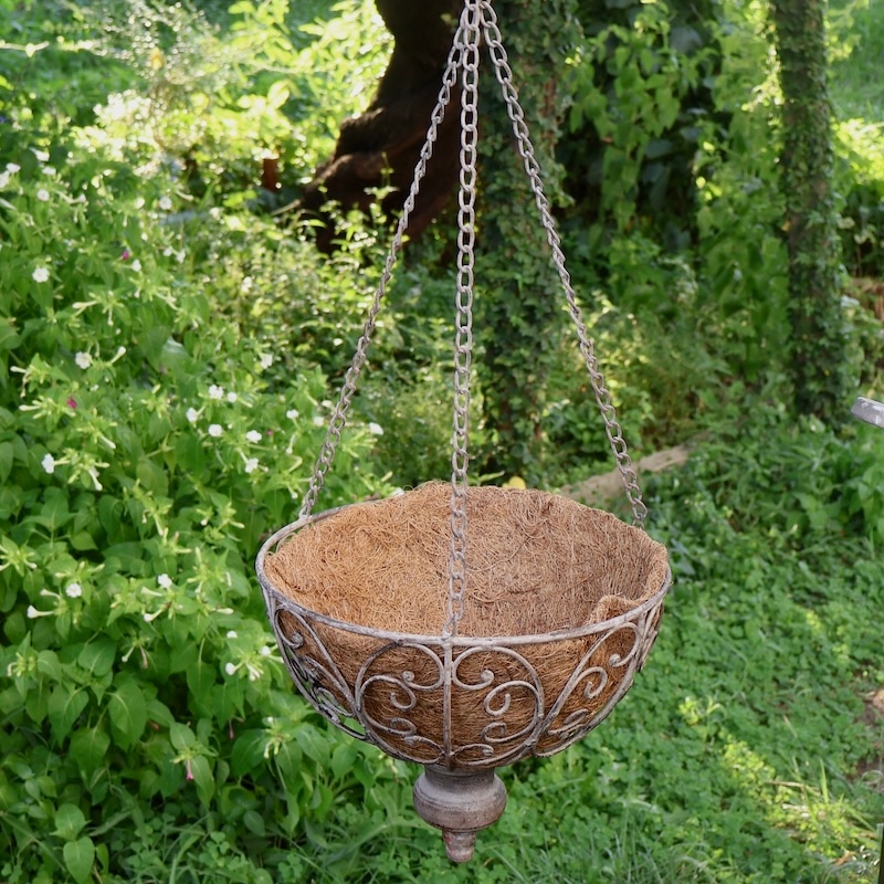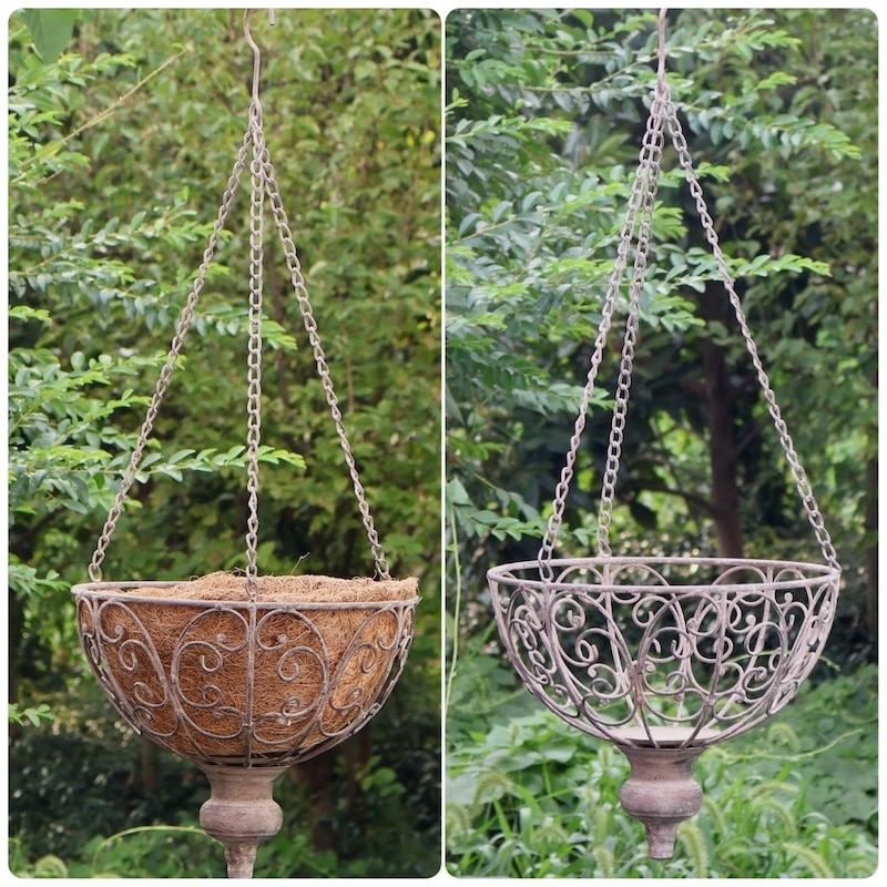 クラシックな雰囲気が漂うとってもオシャレでしっかりしたアイアン製の天吊り用のハンギングバスケットです。