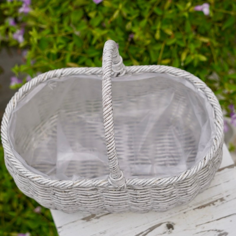 水で洗える☆ハンドバスケット・フラットワイド・ホワイト