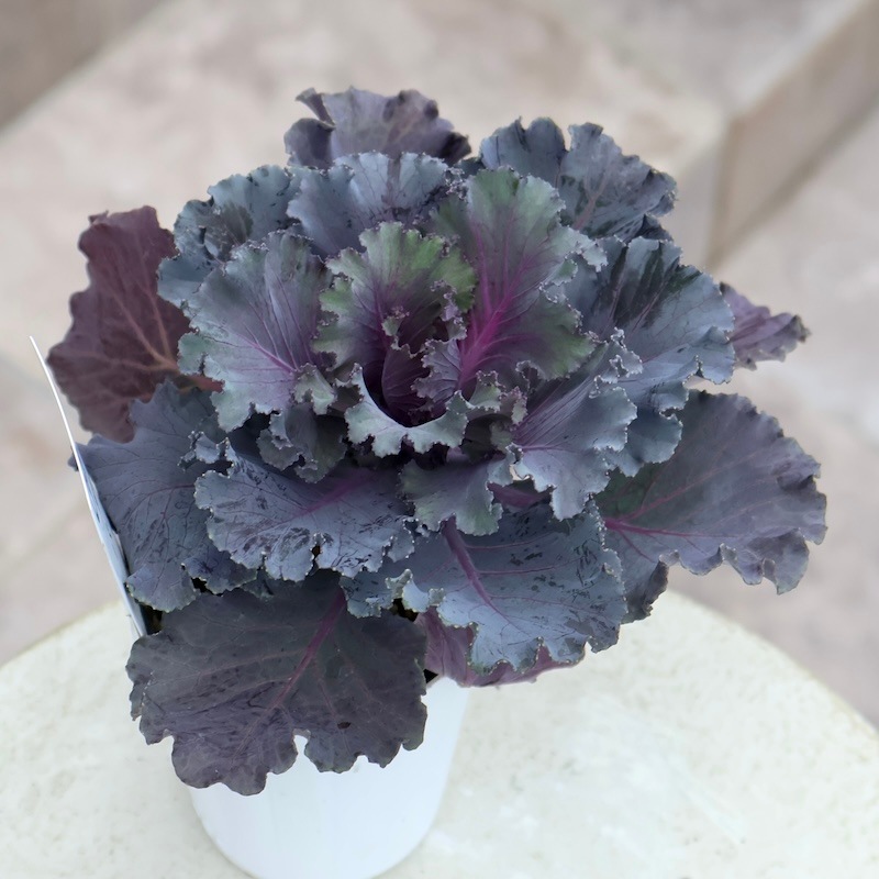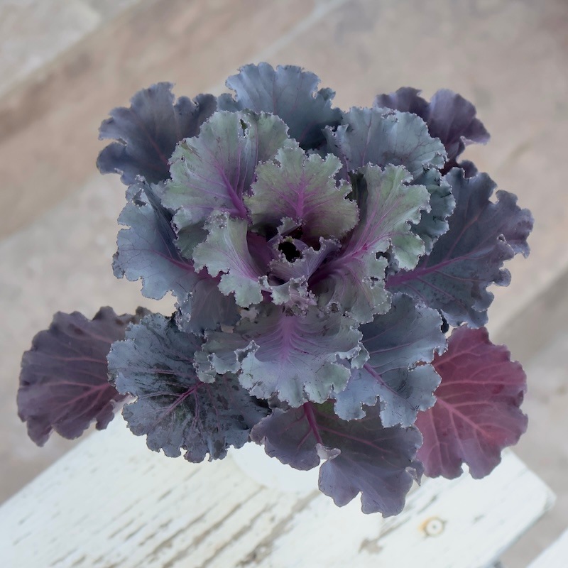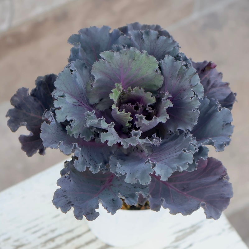 春、暖かくなると「トウが立つ」と言って、真ん中から花茎がひょろっと伸びてきて、まるでソフトクリームのようになり、さらにその先に花が咲きます。 トウがたつ直前まで楽しんでいただくか、花を咲かせるまで楽しんでいただいてもかまいません。 (古いハボタンのイメージの方は驚かれると思いますが・・・)