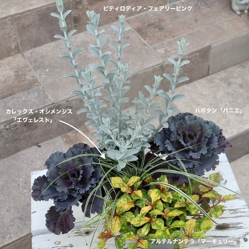 その点、ブラックシルバー系のハボタンは色が戻りにくいのでありがたいですね。 寒くなるともっと深いグレーには変わりますが。